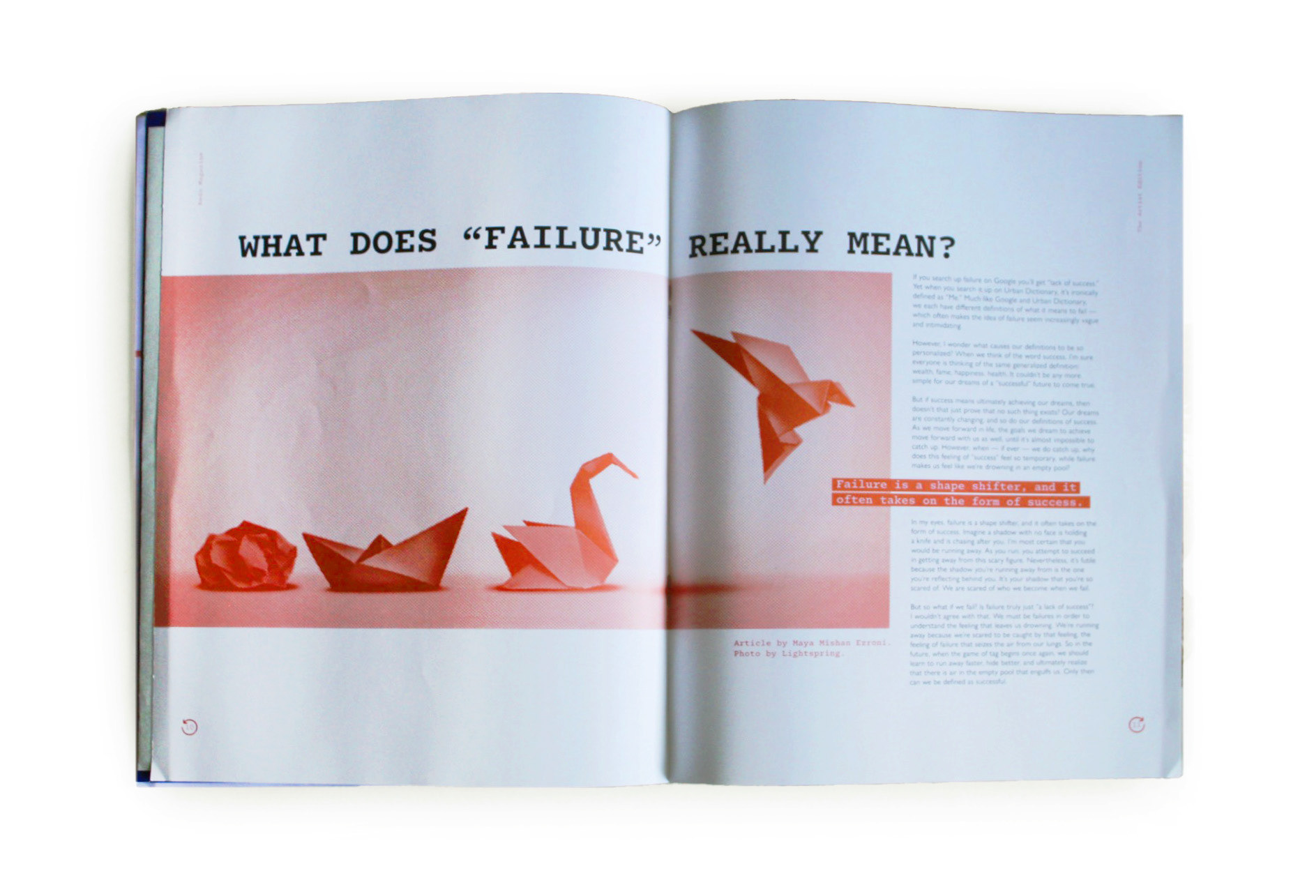 Redo is a magazine which embraces a common human experience: failure. The Artist Edition helps aspiring artists to overcome the fear of failure by helping them see that failure is a necessary thing, not a bad thing.